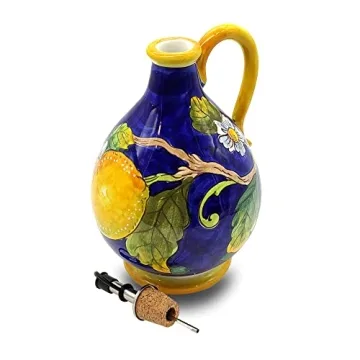 Italian Ceramic Olive Oil Dispenser Bottle - 14 Oz Hand Painted Kitchen Gem by Giotti Ceramiche, Tuscany