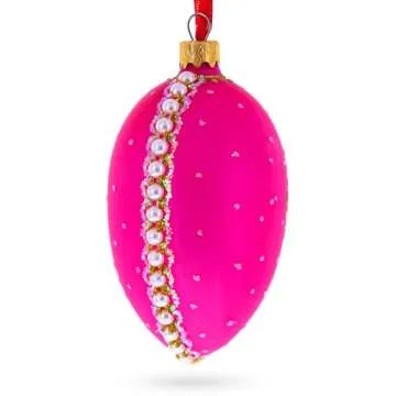Show moreIntroducing the exquisite Italian Fashion House Pearl Buckle on Pink Glass Egg Christmas Ornament, a stunning addition to your holiday décor that embodies elegance and artistry. Measuring 4 inches tall and 2.4 inches wide, this beautifully crafted ornament is made from premium German glass and adorned with exquisite Italian paint, showcasing vibrant colors that shine brilliantly in any light. Each ornament is hand-painted with intricate details, making each piece unique and a true work of art. Designed for easy display, a hanging ribbon is attached, allowing you to effortlessly adorn your Christmas tree, mantle, or any festive setting. Delivered in a colorful gift box, it also makes for a perfect present for loved ones this holiday season.