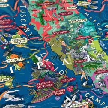 Show moreUnleash your inner sommelier and embark on a journey through Italy's famed wine regions with the Italy Wine Puzzle. This beautifully crafted 1000 piece jigsaw puzzle not only provides hours of entertainment but also serves as an educational tool that introduces you to the exquisite world of Italian wines and geography. Each piece is adorned with stunning hand-drawn illustrations, showcasing delightful grape profiles alongside the aromas and food pairing suggestions that elevate your wine experience. Designed with durability and quality in mind, this puzzle is perfect for both relaxed evenings and engaging group activities.