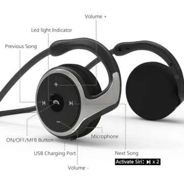itayak Behind The Head Headphones, Bluetooth 5.0 Neckband Around Head Headphones Lightweight Small Foldable Wireless Sports Sweatproof Headset with Microphone & Carrying Case (Black)