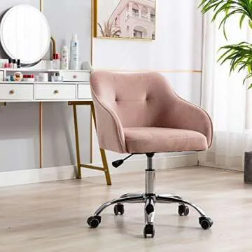 itkidboy Velvet Desk Chair for Home Office, Soft Height Adjustable 360°Swivel Computer Chair, Upholstered Guest Chair with Armrest and Wheels for Living Room/Study Room/Bedroom (Pink)