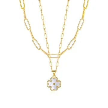 ITS4YEO Four Leaf Clover Pendant Necklace - 14K Gold Plated Double Layer Chain