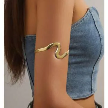 Show moreIntroducing the ItsStarred Minimalist Arm Cuff Gold, a stunning collection of 6 beautifully crafted upper arm bangles designed to elevate your jewelry collection. This exquisite set features an array of trendy designs, including the hammered arm cuff, layered arm cuff, swirl arm cuff bangle, wave upper arm bracelet, layered arm cuff gold, and spiral arm cuff. Each piece effortlessly adds a touch of understated glamour and chic appeal to any outfit, making you effortlessly stylish for every occasion.