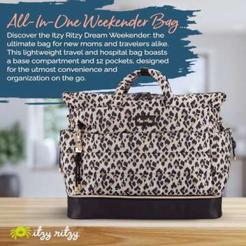 Itzy Ritzy Dream Weekender Lightweight Travel & Hospital Bag Features Base Compartment & 12 Pockets, Leopard