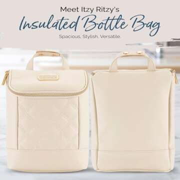 Itzy Ritzy’s bottle bag is designed with a spacious interior that can accommodate up to three tall bottles with additional space for food
