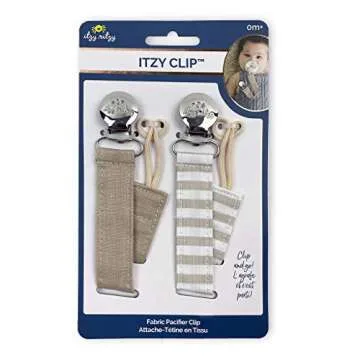 Show more Introducing our adorable 2-pack of pacifier clips from the trusted brand Itzy Ritzy! Made from a high-quality cotton and linen blend, these clips not only serve a practical purpose but also add a touch of style to your baby's accessories. With the ability to easily attach to almost any pacifier or teether, these clips keep essentials within reach and off the floor, ensuring hygiene and accessibility. Their durable design features strong metal clasps that secure safely without damaging your baby’s clothing. Each clip coordinates beautifully with our Sweetie Soother pacifiers, making them an essential part of your baby care routine.