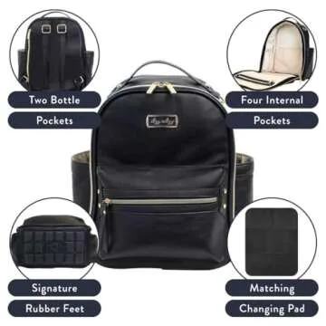 Itzy Ritzy Mini Diaper Bag Backpack – Chic Mini Diaper Bag with Changing Pad, 8 Total Pockets (4 Internal and 4 External), Grab-Top Handle and Rubber Feet (Black)