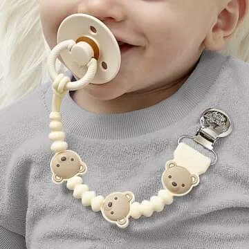 Itzy Ritzy Silicone Pacifier Clip; 100% Food Grade Silicone Pacifier Strap with Clip Keeps Pacifiers, Teethers & Small Toys in Place; Features One-Piece Design, Bear Character & Silicone Cord (Bear)