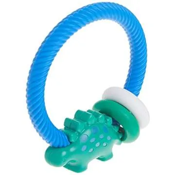 Itzy Ritzy Silicone Teether with Rattle; Rattle Teether Features Rattle Sound, Two Silicone Teething Rings and Raised Texture to Soothe Gums; Ages 3 Months and Up (Dinosaur)