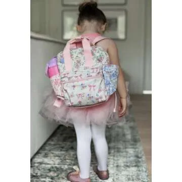 Itzy Ritzy Toddler Backpack - Daycare Bag - Features Adjustable Shoulder Straps, 2 Side Pockets & Spacious Interior with Wipeable Fabric Lining & Name Label, Ribbons & Roses Backpack