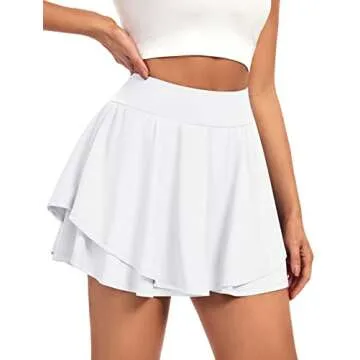 IUGA Tennis Skirt Pleated Skorts for Woman Double Ruffle Golf Skirts for Women Skort with Pockets Tummy Control Athletic Skirt White