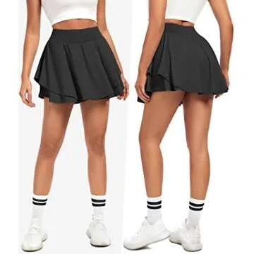 IUGA Tennis Skirt Pleated Skorts for Woman Double Ruffle Golf Skirts for Women Skort with Pockets Tummy Control Athletic Skirt Black