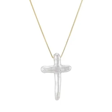 Show moreIntroducing the exquisite handmade Freshwater Pearl Cross Necklace from Iutymu, a stunning piece that beautifully captures the allure of nature's pearls combined with the elegance of Sterling Silver and Gold Plating. Crafted with care, this necklace showcases a unique blend of small and big pearl cross pendants on a delicate 18-inch gold-filled box chain. This baroque-inspired design adds a touch of sophistication and grace, making it a perfect statement piece for any occasion.