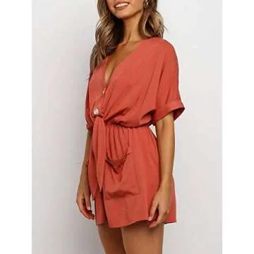 Ivay Women's V Neck Button Rompers: Chic, Comfortable Playsuit with Pockets
