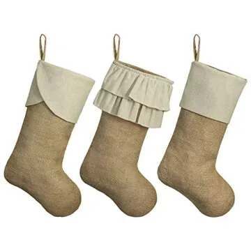 Ivenf Christmas Stockings, 3 Pack 18 inches Large Burlap Stockings with Cream Ruffle Cuff, Fireplace Hanging Stockings for Xmas Party Decorations Home Décor