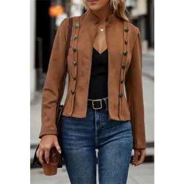 IVERIRMIN Women's Faux Leather Suede Open Front Jacket Dressy Casual Lightweight Cropped Moto Biker Coat Retro Blazer Outwear