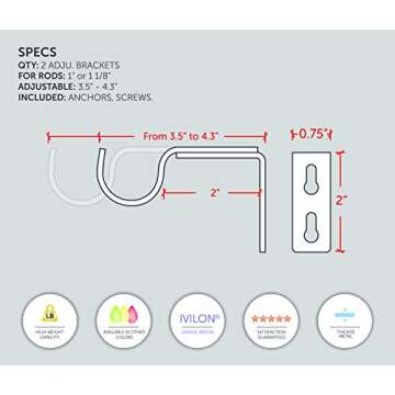 Ivilon Short Projection Brackets for Curtain Rods - for 1 or 1 1/8 Inch Rods. Set of 2 - Warm Gold