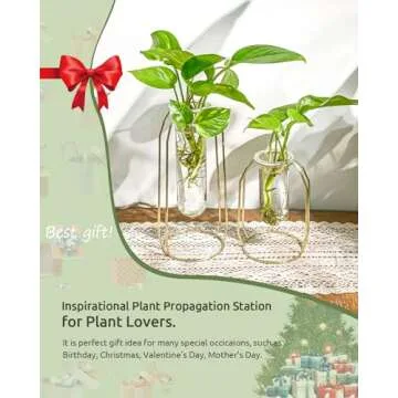 Ivolador Modern Tabletop Plant Terrariums with 2 Test Tube in Metal Frame Perfect for Propagating Hydroponic Plants Home Garden Wedding Decoration (Golden)