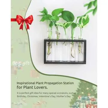 Ivolador Wall Mounted Hanging Plants Terrariumin Test Tube Flower Bud Tabletop Glass Wooden Stand with Test Tube Perfect for Propagating Hydroponic Plants Home Garden Wedding Decoration (M, Black)