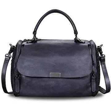 IVTG Genuine Leather Satchel Bag for Women Vintage Handmade Top Handle Crossbody Handbag (Black)
