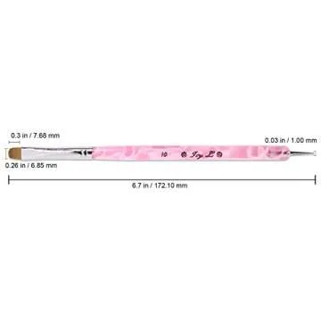 Ivy L Premium 2 Way French Gel Acrylic Nail Art Kolinsky Brush with Dotting Tool for Professional Manicure Cuticle Clean up Nail Art Design (Size 10, Pink Marble)