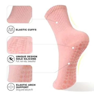 Show moreExperience the perfect combination of comfort and functionality with the Ivyhouse 6 Pairs Pilates Socks with Grips for Women. Designed specifically for diverse activities such as yoga, Pilates, and dance, these socks are crafted from a premium blend of 80% cotton, 10% polyester, and 10% spandex. This unique material composition not only ensures breathability and stretch but also keeps your feet feeling dry and ultra-comfy during every movement. Tailored to fit American women's shoe sizes 5-10, these machine-washable socks are your go-to footwear for both performance and style.