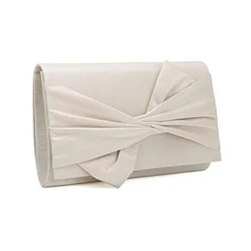 IXEBELLA Satin Evening Bag Bow Flap Clutch Purse for Women Formal Party/Prom/Wedding (Champagne)