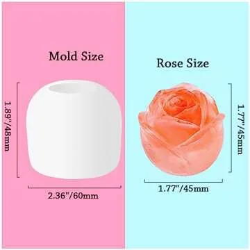 Each rose-shaped ice cube measures approximately 2.4 inches by 2 inches, providing a generous size for cooling drinks.