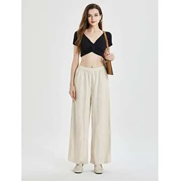 What sets IXIMO Women's 100% Linen Pants apart from other brands is the attention to detail and quality of materials. Many competitors offer blended fabrics that can lead to discomfort in warmer temperatures; however, these pure linen trousers provide breathability and a natural feel against the skin. In addition, the inclusive design caters to various body types, with an elastic waistband and wide-leg cut that many other brands overlook. When considering practicality, these pants incorporate essential pockets, enhancing their value over similar products on the market.