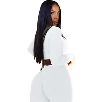 Show moreThe IyMoo Women 2 Piece Outfits Sweatsuit Set is exquisitely crafted for modern women who wish to blend comfort with style effortlessly. This stunning ribbed long sleeve crop top paired with bodycon jogger pants redefines loungewear, making it perfect for a casual day out or a cozy night in. The premium ribbed fabric offers a soft touch, while the elegant white hue ensures that you stand out, whether you're at a brunch with friends or running errands. Designed for ultimate versatility, this tracksuit set can be styled with your favorite sneakers or elevated with chic accessories for a polished look.