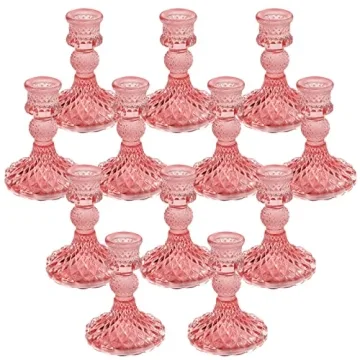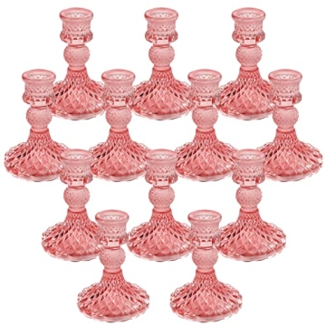 IYOUYA Glass Candlestick Holders 12Pcs - Elegant Pink Candle Holders for Parties