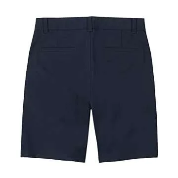 IZOD Boys' School Uniform Flat Front Khaki Shorts, Moisture Wicking Performance Fabric, Wrinkle & Fade Resistant, Navy, 6