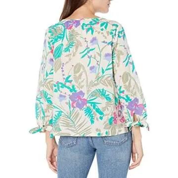 Show moreIntroducing the stunning J.Crew Mercantile Women's Tie Sleeve Popover Shirt in Print, a chic addition to your wardrobe that effortlessly combines style and comfort. Crafted from a high-quality woven fabric, this shirt features a round neckline that accentuates the face, while the cinched sleeves add a touch of elegance and sophistication to any outfit. The unique partial button design offers versatility; wear it buttoned for a polished look or partially unbuttoned for a more relaxed vibe. Available in the vibrant IRIS Jungle Dusty Purple print, this shirt is designed to make a statement wherever you go. Embrace a mix of modern fashion and timeless design with this must-have piece, perfectly sized in XXL for a comfortable fit. Less