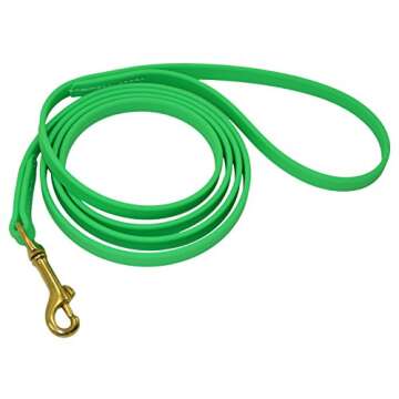 Show moreIntroducing the J&J Dog Supplies Biothane Dog Leash, an exceptional choice for dog owners who prioritize durability, comfort, and style. This 1/2" wide by 6' long leash features a vibrant neon green color that ensures visibility during your walks, day or night. Made from premium quality PVC coated webbing, this leash is designed to withstand the elements while providing a steady hold on your canine companion. Its waterproof material guarantees that it won't absorb water, odors, or dirt, making it both hygienic and user-friendly.