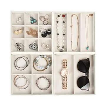 J JACKCUBE DESIGN 4 Stackable Trays Jewelry Storage Display Case for Drawer or Dresser - Holder for Earring Ring Necklace or Cufflinks - MK220-2ABCD