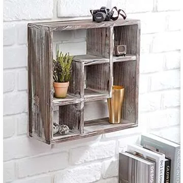 Show more Introducing the J JACKCUBE DESIGN Rustic Cube Storage Wood Shadow Box Display Case – a beautifully crafted, versatile solution for your decorative and practical storage needs. This unique display case features an eye-catching rustic design that adds a touch of vintage charm to any space. Measuring 14.2W x 4.6H x 14.2H inches, this exquisite cube is perfect for showcasing your favorite collectibles, toys, plants, or even your cherished mug collection. Whether you need a stylish organizer in the bathroom, a decorative accent in the living room, or a chic storage solution in your bedroom, this piece fits seamlessly into any decor style.