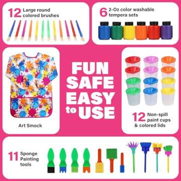 J MARK Toddler Painting Set – 43 Piece Complete Toddler Paint Set, Spill Proof Paint Cups, Washable Paint for Toddlers, Painting Tools, Smock, Brushes and More