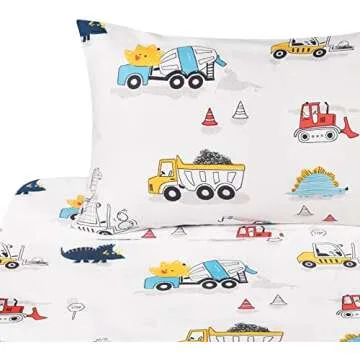 J pinno Dinosaur Construction Work Digger Cars Vehicle Cute Cozy Fun Twin Sheet Set for Kids Girls Children, 100% Cotton, Flat Sheet + Fitted Sheet + Pillowcase Bedding Set (Dinosaur, Twin)
