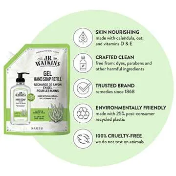 J.R. Watkins' hand wash features a **non-drying formula** that gently cleans without robbing your skin of moisture. This soap is perfect for frequent use, leaving hands feeling soft, smooth, and beautifully cleansed. Pair it with their exquisite **shea butter hand cream** to lock in hydration and maximize nourishment every time you wash your hands.