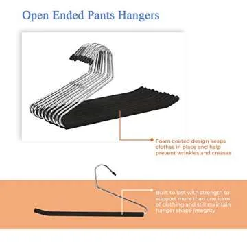 J.S. Hanger Open Ended Anti-rust Metal Slack Pant Hangers with Non-slip Foam Coating, 20-Pack