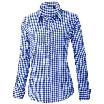 J.VER Womens Dress Shirt Easy Care Button Down Blouse Long Sleeve Shirts for Work Professional Denim Blue Medium