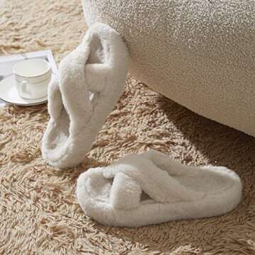 Show more Step into a realm of comfort with our exquisite Faux Fur Cross-Band Slippers, designed to envelop your feet in warmth and softness. Crafted with an ultra-soft faux fur material, these slippers provide a gentle and skin-friendly touch, making them perfect for chilly winter days. The unique cross-band design ensures a secure fit while allowing your toes to breathe, avoiding unnecessary friction often experienced with conventional slipper designs.