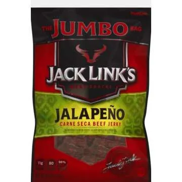 Show moreIf you're on the hunt for a savory, protein-packed snack, look no further than Jack Link's Beef Jerky in Jalapeno flavor. Made with 100% premium cuts of lean beef, this jalapeno beef jerky offers a mouth-watering taste experience that’s both satisfying and nutritious. At only 80 calories and 10g of protein per serving, this delicious jerky not only fuels your body but also kicks your snacking game up a notch, thanks to its bold and spicy profile. The slow cooking process over hardwood smoke infuses each bite with rich flavor, elevating this snack to an irresistible level.