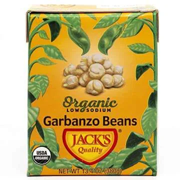 Jack's Organic Chickpeas Garbanzo Beans 13.4 oz. | Packed with Protein and Fiber, Heart Healthy, Low Sodium & Non GMO | (8-PACK)