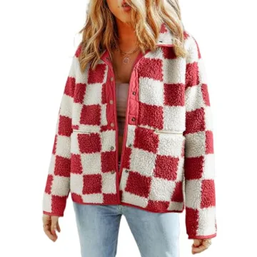 Show moreIntroducing the perfect blend of warmth, comfort, and style - the Jacket for Women 2024 Plaid Long Sleeve Lightweight Fleece Jacket. Crafted with 100% polyester, this fleece jacket is designed to provide a soft, skin-friendly touch that keeps you cozy. The lightweight design features a trendy checkerboard pattern that adds a dash of flair to your fall wardrobe. With its long sleeves, stylish lapels, and functional buttons, this jacket encapsulates casual elegance, making it an ideal choice for various occasions. Whether you're heading to work, enjoying a casual day out, or just staying in, this jacket promises to keep you warm while ensuring you look effortlessly fashionable.