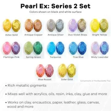 Show more If you're looking to elevate your crafting projects, look no further than Pearl Ex Metallic Mica Powder. This premium brand offers a unique blend of extreme colorfastness and dazzling metallic effects that can be applied to a variety of surfaces including wood, fabric, and clay. Each jar is filled with vibrant colors that promise to enhance your creations, giving them a stunning pearlescent luster or a striking metallic sheen depending on your desire.