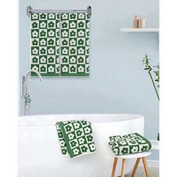 Jacquotha Hand Towels Checkered Floral - Set of 4 Soft Face Towels for Bathroom, Medium Size 13” x 29”, Dark Olive Green