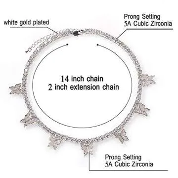 Jacruces Butterfly Necklace Tennis Chain Butterfly Choker Bling Iced CZ Butterfly Necklace Silver Women (16, 3mm-Silver)