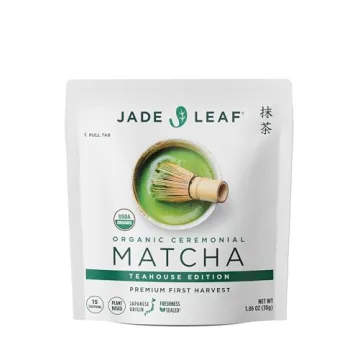Show more Indulge your senses with the exquisite taste and numerous health benefits of Jade Leaf's Premium Organic Japanese Matcha. Recognized as a treasure among tea enthusiasts, this ceremonial grade matcha comes in a compact 1.06 oz (30 g) pouch, ideal for daily matcha aficionados and newcomers eager to embrace this revered ancient tradition. Meticulously sourced from the lush tea gardens of Uji and Kagoshima, Japan, where fewer than 1% of tea fields meet organic certification, this matcha captivates with its brilliant green hue and a flavor profile that dances between rich, smooth, nutty, and subtle floral tones.