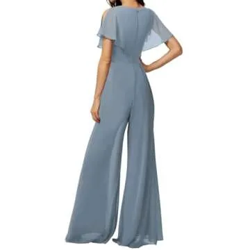 Show moreIntroducing the JAEDEN Bridesmaid Dresses Jumpsuits Pantsuits, where elegance meets comfort in a stunning design perfect for any special occasion. Crafted with exquisite attention to detail, this jumpsuit flaunts a chic V-neckline that gracefully frames the collarbones, providing a touch of sophistication that enhances the feminine charm of your bridesmaids. The trendy short sleeves combine style and practicality, allowing for effortless movement while ensuring your bridesmaids remain comfortable throughout the event. With a flattering cinched waist, this jumpsuit accentuates natural curves, creating a visually appealing silhouette that will make every bridesmaid feel effortlessly glamorous.